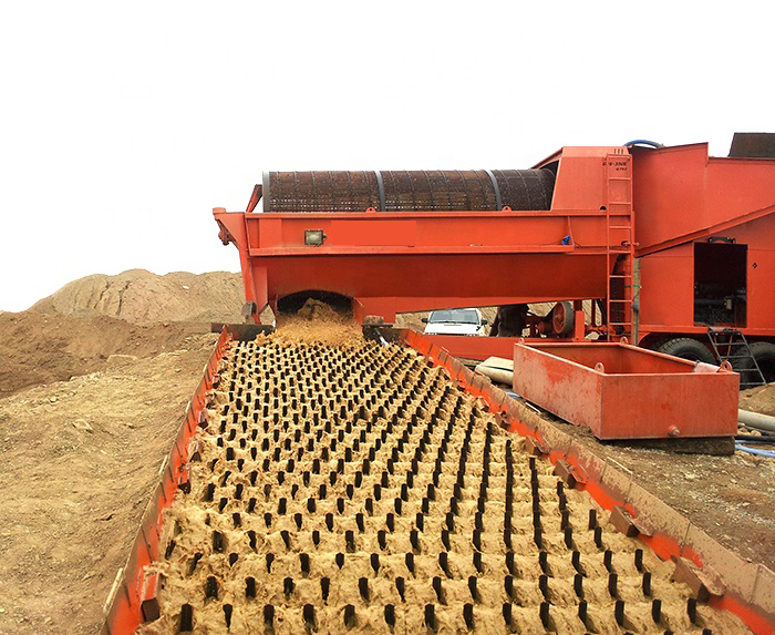 可用挖掘機、鏟車、汽車隨時拖動。該機綜合了固定溜槽和跳汰機的選別原理及特點,克服固定溜槽的板結現象并采用雙道回收將細金跟粗金、片金,增高了金的選礦回收率,選礦周期為10個小時,工作100-500t/h。