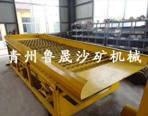 第二種小型的沙金機(jī)器 小型的沙金溜槽,這種小型的沙金溜槽上方有料斗和隔壁篩,可以將石塊隔離出去。把石頭隔離出去,含沙的礦料進(jìn)入下方的沙金溜槽進(jìn)行黃金的回收。這種沙金溜槽回收率比較高。自動(dòng)化程度比較高,是現(xiàn)在比較普遍使用的小型沙金機(jī)器。