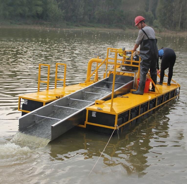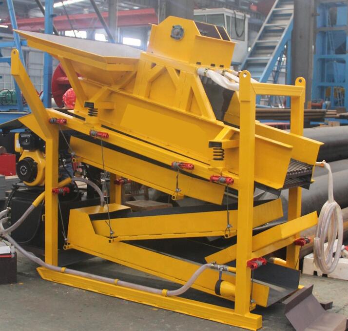 第二種小型的沙金機(jī)器 小型的沙金溜槽,這種小型的沙金溜槽上方有料斗和隔壁篩,可以將石塊隔離出去。把石頭隔離出去,含沙的礦料進(jìn)入下方的沙金溜槽進(jìn)行黃金的回收。這種沙金溜槽回收率比較高。自動(dòng)化程度比較高,是現(xiàn)在比較普遍使用的小型沙金機(jī)器。 這幾種小型的沙金機(jī)器可以根據(jù)礦區(qū)和礦料的不同來選擇,很多客戶選擇小型的設(shè)備是主要用于探礦或者是小型小范圍的開采, 有了收益后再上大型的開采設(shè)備?,F(xiàn)在這幾種設(shè)備在非洲、南美洲等多個(gè)地區(qū)應(yīng)用比較廣泛。砂金回收設(shè)備