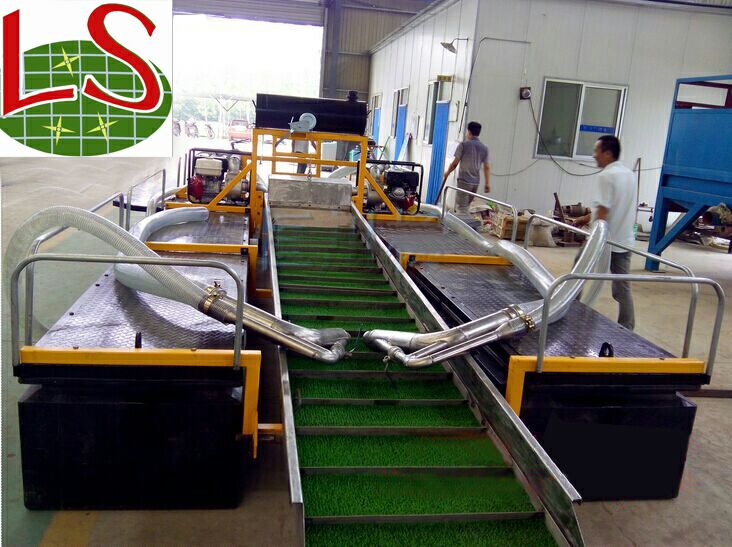 以前回收一般是采用浮選、氫化、堆浸等工藝進(jìn)行黃金回收,但是這些工藝都有缺點(diǎn),一是污染嚴(yán)重,二是浮選很多包裹的顆粒金收不住。所以現(xiàn)在使用比較廣泛的是重選法。采用重選設(shè)備將黃金進(jìn)行回收,重選設(shè)備有很多優(yōu)點(diǎn),比如沒(méi)有污染,另外重選設(shè)備有很多種可以根據(jù)礦料不同的情況來(lái)進(jìn)行并聯(lián)使用。比如回收顆粒金的光用來(lái)回收顆粒金,回收毛金、片金的光用來(lái)回收這兩種形態(tài)的。魯晟機(jī)械生產(chǎn)的尾礦重選設(shè)備,現(xiàn)在在多個(gè)礦區(qū)有所應(yīng)用,是用來(lái)回收選礦廠尾礦的。砂泵采金船