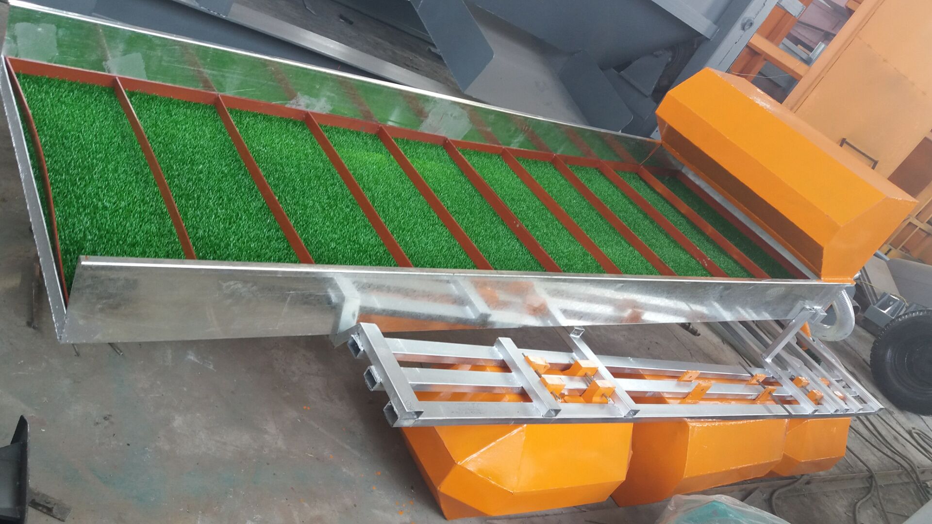 全自動鼓動溜槽,是魯晟機械設計制造的,已經(jīng)在全球多個礦區(qū)有所應用。該設備是全自動的,工作和排礦、進料都是自動化的。以前的鼓動溜槽是需要人工卸料的,需要將床面翻起機械卸料?,F(xiàn)在魯晟新型的鼓動溜槽采用自動翻起的床面,采用自動排礦的工作方式。重金屬回收后,自動排礦,無需人工手持水槍沖洗。這種溜槽對于大顆粒的黃金回收率高,并且效果好。產(chǎn)量大,可以配套至移動式的選金機或者是振動選金機上面。